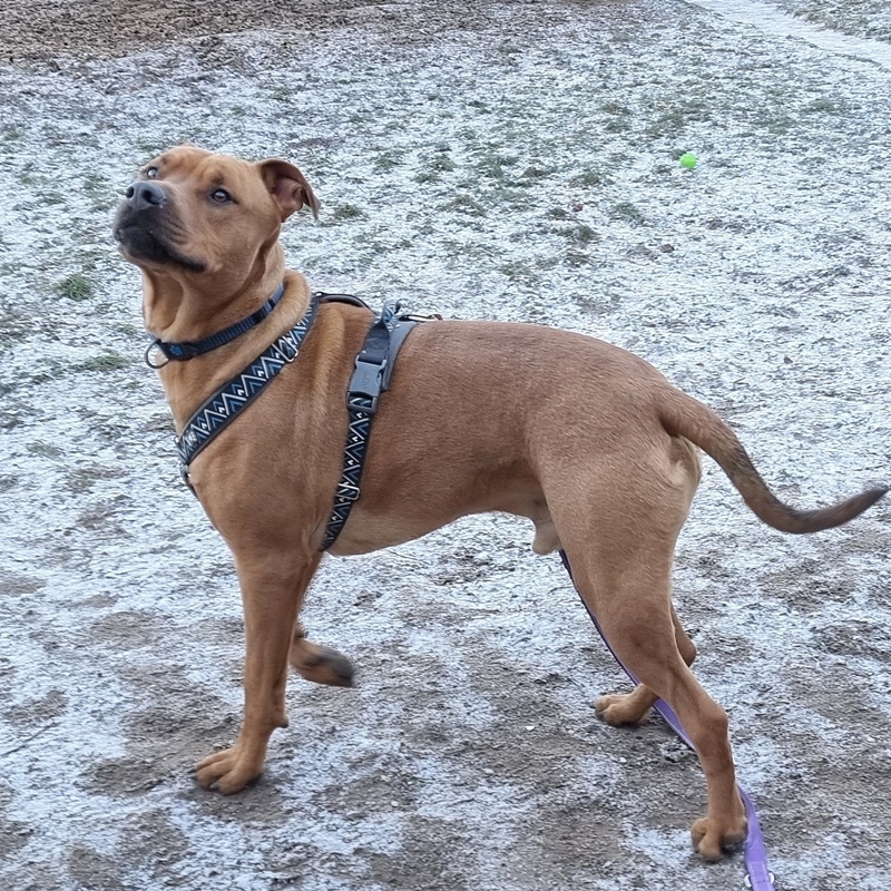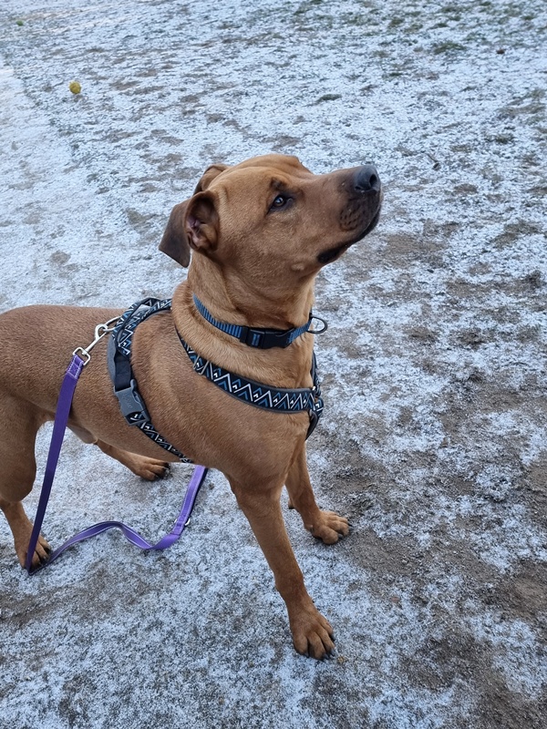 V útulku si postupně zvyká. Od začátku je přátelský ke všem lidem. Na procházkách je hodný, má tendence se své lidské smečky držet. Když ale někam moc chce, dovede si pořádně potahat a má dost páru.
